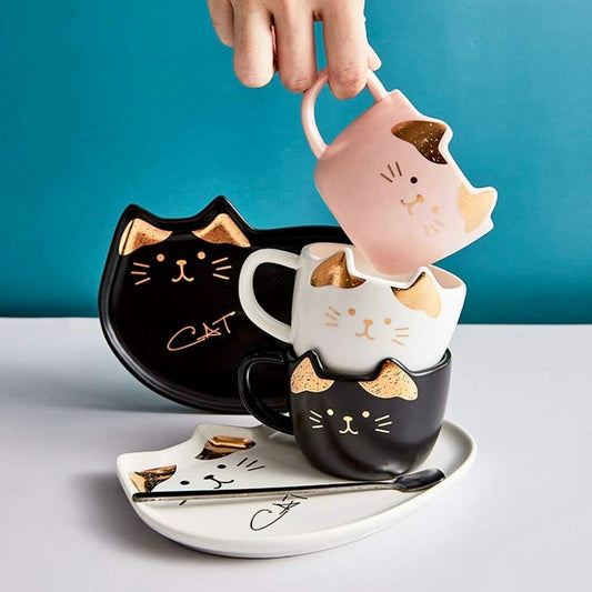 FIKASET - 3 delar i keramik kopp, fat & sked